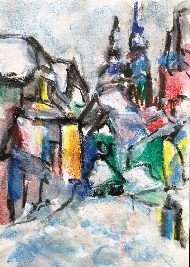 Ein weiteres Beispiel für eine freie Umsetzung basiert auf meiner Hopfgarten-Skizze aus unserem Skiurlaub in 2022.
