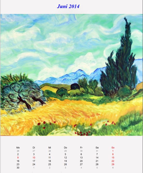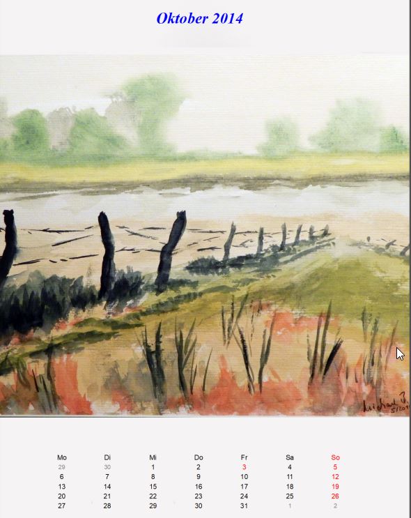 Weiterhin stehen hauptsächlich Aquarellbilder im Vordergrung. Aus der Beschäftigung mit den Impressionisten in 2010 habe  ich meine  daraus entstandenen Versuche wie Strandweg und Abendstimmung am Meer und auch mein Lieblingsbild von van Gogh (d.h. meine Kopie) ausgewählt.  Eigentlich geht aber inzwischen meine Vorliebe zur expressionistischen Ausdrucksweise (am hohen Ufer, Kirchweg, Segelboote).