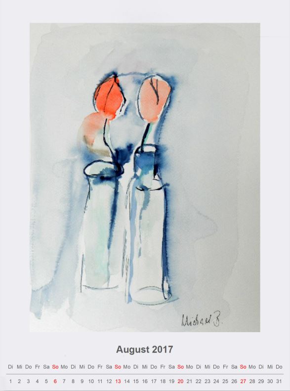 Die Aquarelle werden farbiger. Ich versuche mit „nass in nass“-Technik spannende Farbverläufe zu erzeugen und eifere dabei Emil Nolde nach. Es ist eine Kunst im Aquarell den Zufall zu steuern – und so bleibt das Vorbild Nolde natürlich unerreicht.
