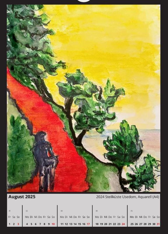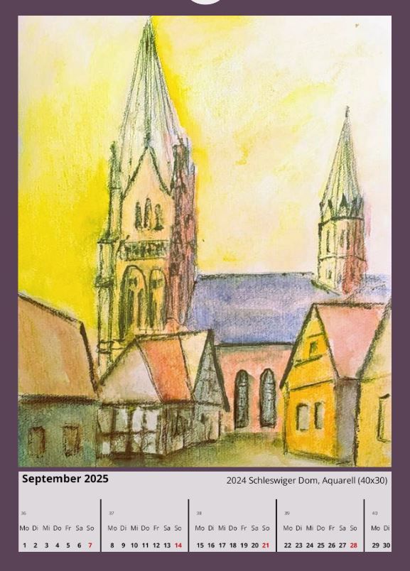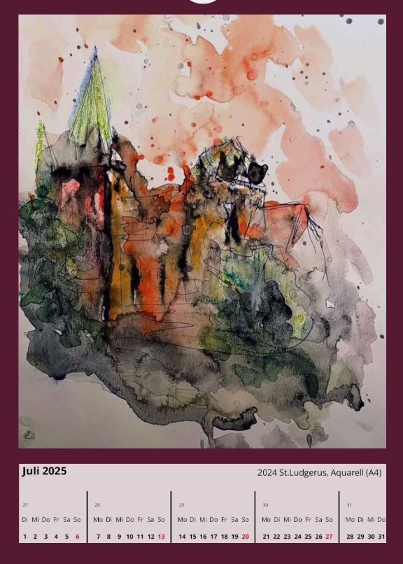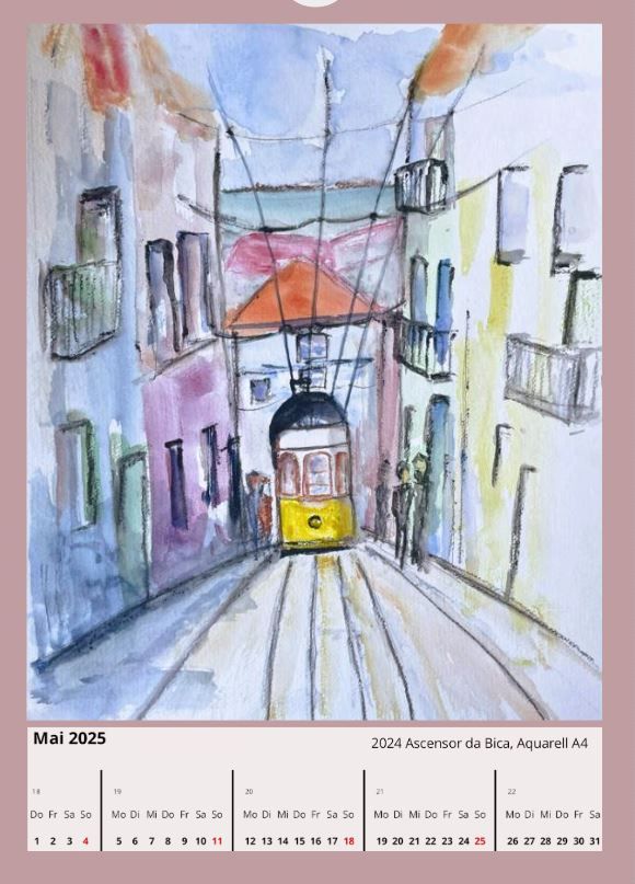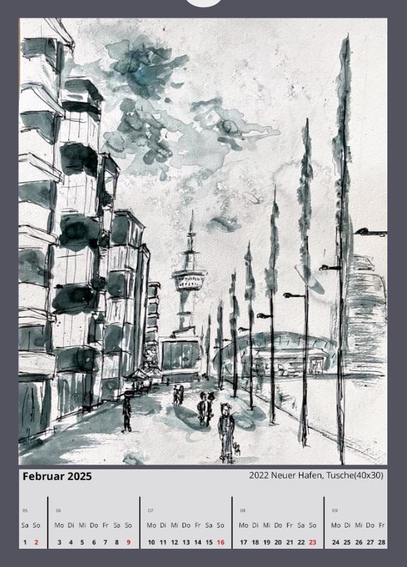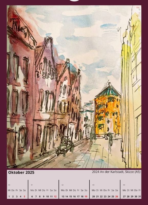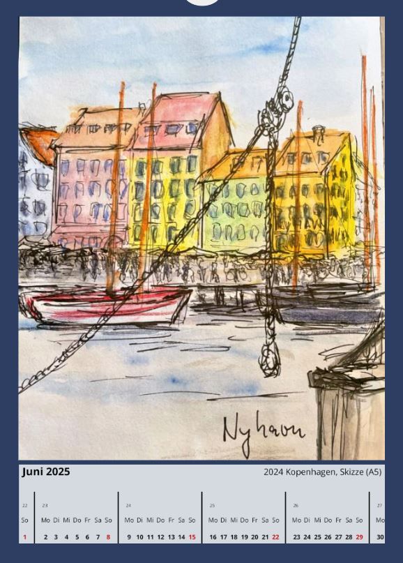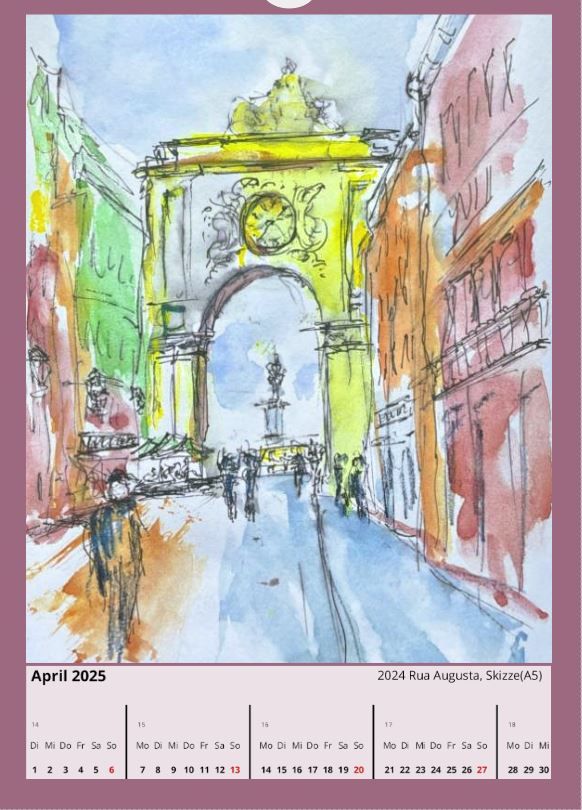 Nicht ganz so zufällig und bunt sind die Kalenderblätter 2025. Da ich meinen künstlerischen Schwerpunkt stark in Richtung Skizzen verlegt habe, stammt die Auswahl aus diesem Bereich. Mit den Reise-Skizzen erzählt der Kalender natürlich auch einen kleinen Urlaubsbericht vom letzten Jahr.