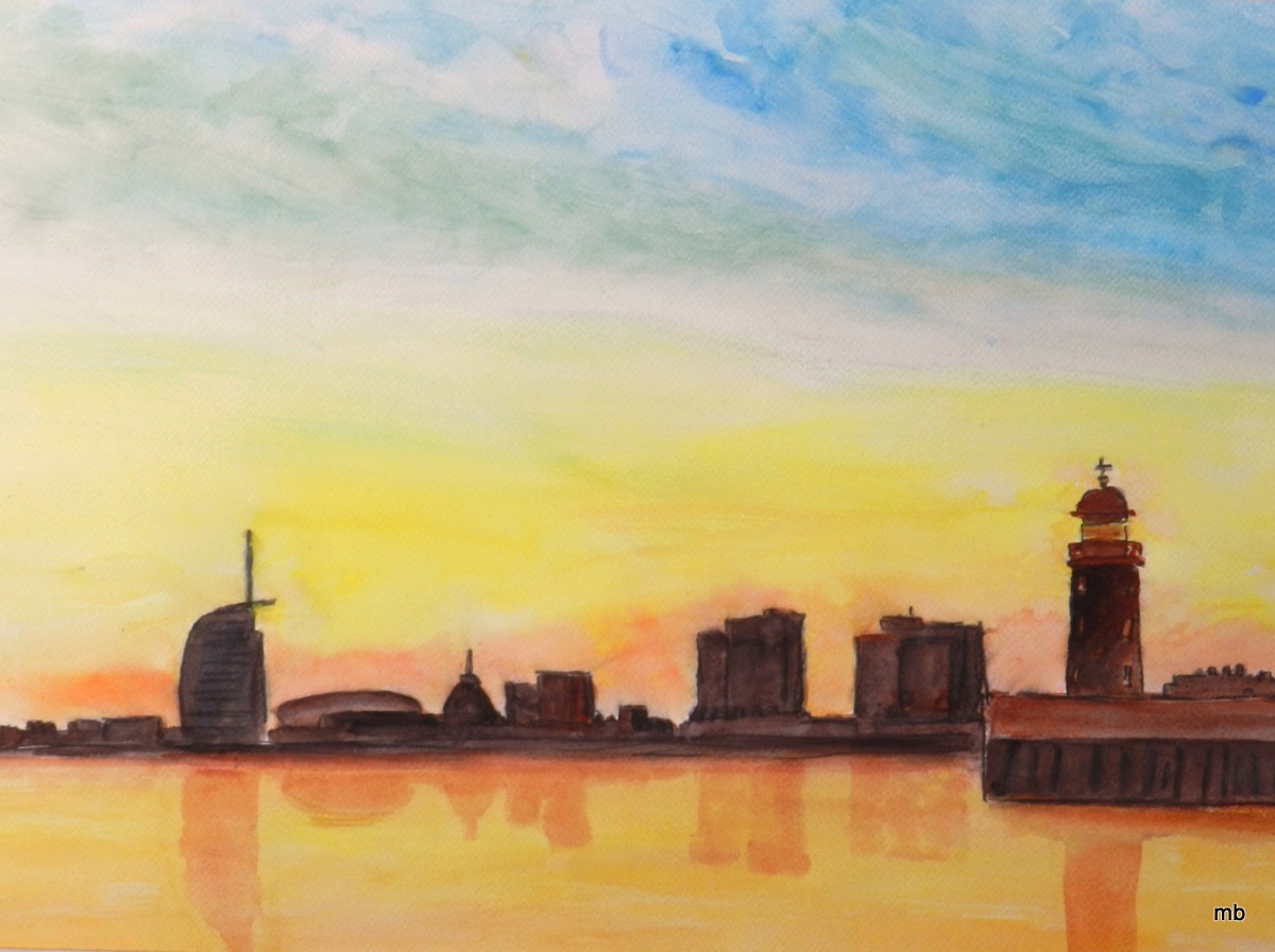 Mal eine andere Skyline, keine konkrete Ansicht – aber wahrscheinlich am Wasser gelegen. Die abstrakte Umsetzung lässt dem Betrachter den Spielraum „seine Skyline“ zu entdecken.